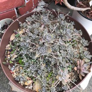 どの子持ち蓮華の鉢もお花が終わりを迎えており ちょっと汚くなってきましたー(;・ε・ ) 花芽を切ってちょっと整理しようと思いますっ(๑ ˊ͈ ᐞ ˋ͈ )ƅ̋ もう冬支度を始めている蓮華ちゃんなんですけど ほんとは土を変えて植え直してあげたいんですよー! もう休眠しちゃうので、このまま何もいじらず、春まで待った方がいいのかな~?