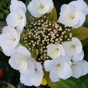 ↑台湾トキワアジサイ ↓冬アジサイ スイートルナ どちらも常緑のアジサイで年2回 3月頃と今の時期にお花が咲きます。 これは2回目の開花です。 前回の投稿から蕾が成長して装飾花が大きくなりました。 台湾トキワアジサイの装飾花が初めて見られて嬉しいです~😄🎶