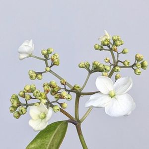 台湾トキワアジサイ アジサイ科 アジサイ属 常緑のガクアジサイです。 3月に花が咲きます🤍 装飾花が開きはじめました。 6月にも花が咲くので 年に2回お花が咲きます🤍🤍 🏷金曜日の蕾たち