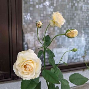薫乃の二番花。 一番花はピンクがかったアイボリーだったのに今回は随分黄薔薇寄りのクリーム色。