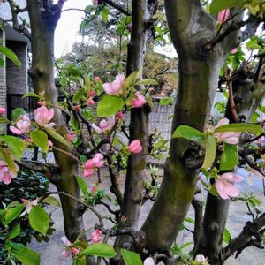 今日もあったかくて、いいお天気ですね☺️ マンションのカリンの花が咲きました🌸 こんなにじっくり見たのは初めて。 かわいい💕