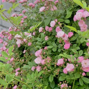 つるバラ 群舞 あっという間に満開 ふわふわ咲いて、優しく甘い香り💞 優しいピンク💞 色味が淡いのは日陰だから?