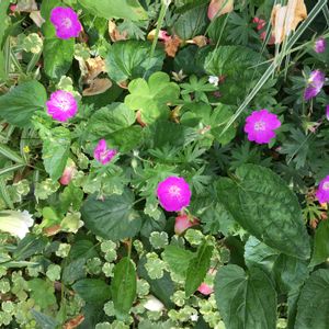 おはようございます😌 今朝は⛅かな😉✌ フウロ草でいいのかしら、私の好きな花です😌秋になると紅葉もするんですよ✌去年の葉🍁が一枚残ってました😂