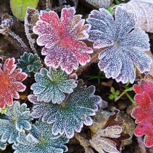 おはようございます☀ ❄フウロソウの葉っぱ❄ 今朝は霜が降りフウロソウの葉がフリーズでした。