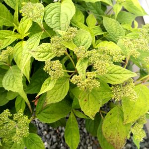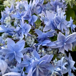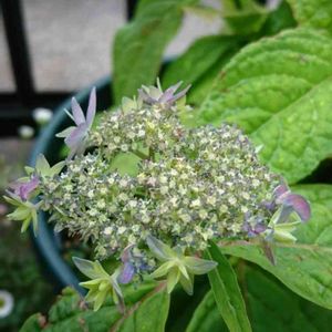 この子もマルルーと同じで3年目のヤマアジサイです。 確か美方八重という名前です😌❤️ この子はホームセンターで一目惚れしてお迎えしましたが、とっても丈夫ですし育てやすくどんどん枝が毎年増えます。 そして、個人的な目測ですが、去年ついた花芽にしかお花が咲かない子ですね。 マルルーはたくさんのお花が今年できた枝にも咲いている気がしますが、この子は決まった枝にしか咲きません。 なので咲いていない枝も来年まで大事にしなければですね〜☺️💕 まさかピンクになるのか?!ってちょっとドキドキしてます。 美方八重はブルーが透明感があって好きなのですが…😂💦