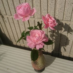 11月ですが昼間の日差しは暖かい(*´ー`*)栃木よりこんにちは😃 まだまだ昼間が暖かいからか、秋のクイーンエリザベスさんがやっと?!見頃になってきました。 夏季にマルバルコウソウが絡み付いてしまった💦ので9月末にバシバシ強めに剪定し、施肥したのですが、めげずに7㎝位の花を咲かしてくれてます❤️ ただ日差しの関係で南側に近い枝の方が花つきや咲きが早いのは仕方がないですかね( ̄▽ ̄;) 地植えのため、回せないし😅 暖かい方がいいのは花も人も一緒かな🎵 picは全体的にバランス悪い花達をバシバシ切って花瓶に挿したものです。これだけでも玄関に飾ると華やかになるので重宝します(*´ー`*)