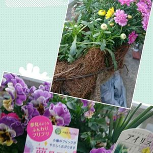 本日3回目投稿します。 3/29(月) 春に咲く花コンテストに出したくて 定植完了しましたョ 右奥しろ ↑マーガレットモリンバサッシーピンク色 *やや濃いピンク色 *黄色 ↓左側の薔薇咲きジュリアンが小さく見えるくらい夢見るパンジーが勢力合って😊 右側アイリスが、まだ咲かない 敷地内のフェンスに三日月型のワイヤーフレーム植え いつも見に来て貰ってありがとうございます。