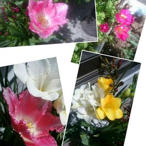 こんにちは🙂 今日も横浜市🍀🍀区晴天 今日も見に来て戴いてありがとうございます。 秋植付球根🌷開花し過ぎてこんな感じ😊フリージア新球根黄色、白色は茎が外へ広がるのでワイヤー支柱で、支え密に撮影 右上フリージアは旧球根。 近寄るとフリージアの香りが良い😌 🐝🐜モンシロチョウもやって来てる 葉物野菜にモンシロチョウからの卵の防除鉢植え配置を替えた。