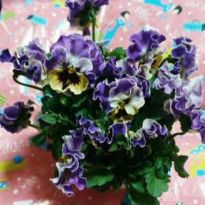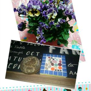 今晩は🙋今朝外出(孫たちに昼食買い出し食べるところ見届け見守りに行く日)する前に薔薇咲きジュリアンが小さく感じてしまい、夢見るパンジーを切り花にしたのです。 パンジーが、こんなに太い枝に成長し、嬉しい悲鳴、ガーデニング長い間の初めてよ枝の太さ3ミリ~5 ミリって🎵 ↓孫の1番目→タイル工作 ←3番目の孫作品キティちゃんの粘土を焼き物? ママは棄てるつもりなのか? 写真だけは撮らせて貰う 譲って欲しい‼ 余談・夢見るパンジーの右横植栽のアイリスも茎が延びて来ました🎵 今夜も見てくださりありがとうございます🌸🐶 車に乗り町中のサクラ🌸はどんどん散り葉桜になりつつありますね。