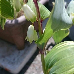 投稿後に判明した事 🎵 斑いりアマドコロって云うらしいです。 花の付き方は2輪づつ釣鐘の細長い物 葉はつるつるしてる ⚛⚛⚛⚛⚛⚛⚛⚛⚛⚛⚛⚛⚛⚛でもネ、🤔ナルコユリとも思うって葉を触らないと違い判らないの。 840種記載されてる書籍図鑑に載って無いとは、どうしてかな? 葉は斑いり、花は鈴蘭みたいに下を向いてます、花色白い。