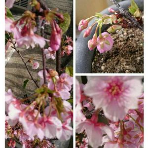 今晩は🙋 昨年2月に開花した河津桜の鉢植えです。 今年の蕾は今朝の段階ではやっとピンク色の花弁がひと蕾から覗く程度。 今夜から明日にかけ雨天だとまだまだ先ですね 桜前線って沖縄しかまだ咲いてない? 早咲きでも見てみたいですね✨🎵🎵 今日から2月 1日過ぎるのは早く感じ デモひとつき過ぎるのはゆっくりと感じた 今日も見て頂きありがとうございます😊 今月も宜しくお願いします🙇⤵ 撮影場所自宅テラス 撮影日*2020,2 鉢植え河津桜🌸