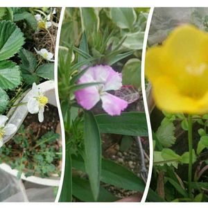 携帯落下させまたまた不具合続いてます。何回かタッチしてますから、 お許しを🙇 こんにちは、 少しずつ春に近付いて一輪づつ咲きました‼🎵 雨天になる前の曇り☁に撮影2021.3/12 (金)am10:30 *黄色いフリージア *2年振り?ピンク色撫子←←LINEに残されていたデータには、赤色でした。😅 *🍓苗木の白色花 投稿続く いつもみて、下さりありがとうございます😊