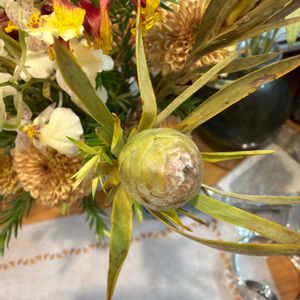 奥様が安かったとのことで購入してきた切り花に混じってた…おぉ!?ネイティブフラワー…リューカデンドロンかな? せっかくなので、ドライにして超久々に数年前に作ったドライシリンダーを仕立て直し。 中々かっこいい雰囲気ではないでしょうか…!(^ω^)