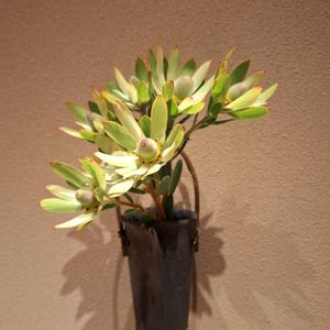 リューカデンドロンかな? 2枚目の画像が全体像。背丈が2M越しているは初めて見た。 苞(花みたいに見える)が付いたら見応えありそう。