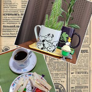 ☁🙋♀️❗ おはようございます 🏷️毎月2日はスヌーピーの日 🏷️チームスヌー 今朝はハムサンドとコーヒー トマトジュース サボテンもドラセナも元気✨