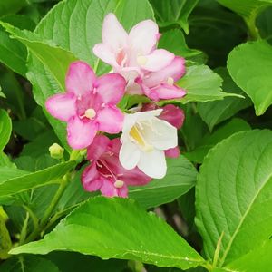 箱根ウツギ🌳 ☀️32℃/19℃ 外にいるとすぐに汗が出るほどの暑さ....。 関東地方はまだ梅雨入りしていないけど、既に梅雨明けしたような暑さ。 先日お散歩中初めて見るお花 一つのところから全く違う色2色のお花が咲いている。 とても綺麗な色使いで可愛い。 ネットで調べたら箱根ウツギという木のよう。 知らない木 花がまだまだ沢山あるな〜