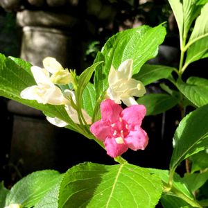 箱根ウツギ 1本の木から、白からエンジへのグラデーションの花を付けるよ。 最初は白、真っ白だよ。 自然って、不思議だね。