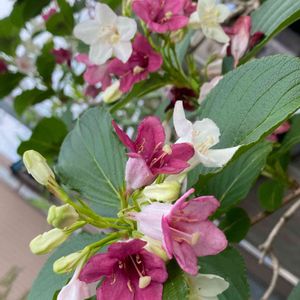 おはようございます。 ピンクと白が一緒に咲いています💓💞 元はピンク一色だったはず💦 可愛いです 6プーままさんから 「箱根ウツギ」 と教えていただきました🤗 「ヒメウツギ」 には白花はつかないそうです。 3年前にいただいた小枝を挿木し たものです。 花がついて名前も分かり嬉しいです。ありがとうございます💓💞