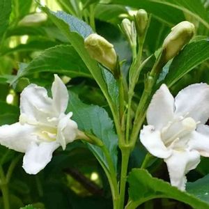 箱根ウツギの花が咲きました。始めは白ですが、徐々に赤く変わっていきます。