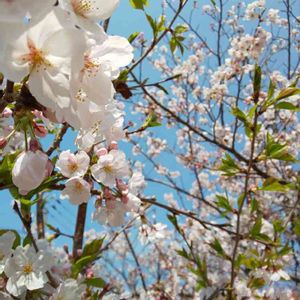 ちょっと見にくいですが、桜と木蓮のコラボです。 木の下でお弁当を食べていたら、大きな木蓮の花びらがポトっと落ちてきました。 外で食べるお弁当は、美味しいですね〜