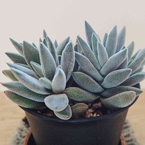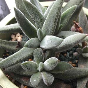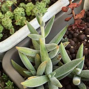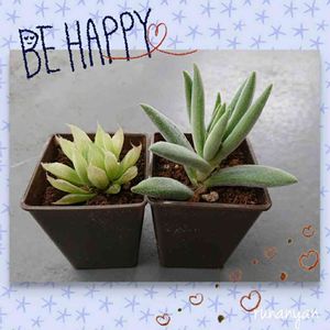 今年の2月に1ポット100円だったかな?1番上 名前の解らない謎多肉2種。 別々に植え替えて 1番下2つ現在。 成長したのか、徒長したのか(¯―¯٥) 誰か名前わかる方居ますか〜(。・ө・。) 毛の生えてるのは硬いです、クインテンシスのような肌触り。これはラージフォームだとわかりました