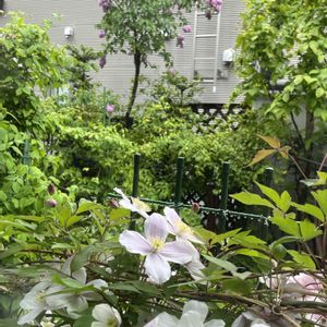 クレマチスモンタナ🤍グランディフローラ🤍 満開になりました💖💖💖 旧枝咲きなのに毎年主人にぶった斬られ🤣 今年はワイヤープランツと格闘してたので難を逃れたモンタナ様👑 さてどんな素敵な景色になるかな😍と期待してた私ですが〜 なんかいつもよりスカスカしてるところが多くて "なんだかなぁー🙄"って感じです。 ほぼ新旧両枝咲きと同じですね( ・∇・)
