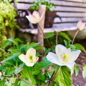 ✩クレマチス グリーンアイズ✩ 咲いてきました。 今年お迎えしたばかりです。 他のクレマチスは 芽吹いてきてますが まだみたい… これからかな(⸝ᵕᴗᵕ⸝⸝୨୧) 暖かくなると お庭に出るのが楽しいですね*°♡