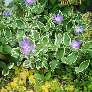 ツルニチニチソウ 足元は多肉とクリスマスローズ 半日陰の植込み。