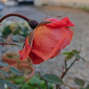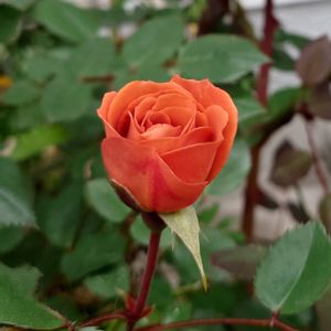 開きかけた薔薇が好き🌹 ミニバラ テディベア🧸 雨ですねー濡れたら寒い凹○コテッ