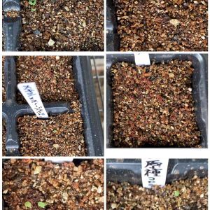 こんばんは♪ 交配した種、6マス発芽が見られて ました。50マス中6マス😓 2週間経過してるので、もう出ないかなぁ💦 なかなかムズイ❗️ 発芽した芽も無事に育ってくれるか、、、。自信ないけど頑張ります😂