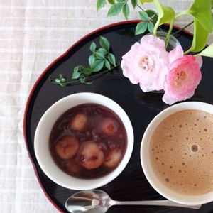 Tea Break☕ 先日 白玉粉を使った 焼き菓子を作ってた娘 その残りで 今度は白玉ぜんざいを… まぁ何かと まめまめしく いろいろ作ってて 感心感心… (ぜんざいは出来合いでしたが) あっ 私は食べる専門です😋