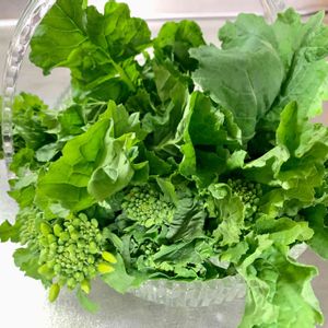 春の便り 菜の花が八百屋さんに 食するまえに 花咲かないかなー 咲かしてみよー