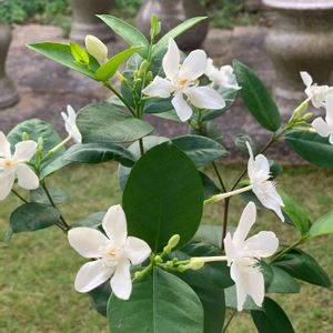 今日のお花 💮ジャスミン💮 モクセイ科ソケイ属(素馨属) 英名「Jasmine」 和名「茉莉花(マツリカ)」 💮シルクジャスミン💮 ミカン科ゲッキツ属 英名「オレンジジャスミン」 和名「ゲッキツ(月橘)」 別名「キュウリコウ(九里香)」 沖縄名「ギキチヤー」 花言葉「純粋な心」 純白の小花が、心が純粋な少年少女を連想させることに由来 香りがジャスミンに似ており、オレンジのような柑橘系の香りがすることからオレンジジャスミンともいわれています 🙏今日のお花は「ジャスミン」ですが、花名にジャスミンが付いていたので「シルクジャスミン」をUPしました。 ※ モクセイ科のジャスミンとミカン科のシルクジャスミンは別種です 人気の投稿に入りました 25.03.07 ありがとうございますm(_ _)m セカンドハウスの畑にて 過去pic 7月撮影