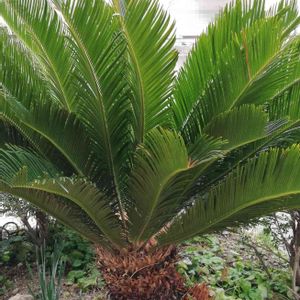 ソテツ(蘇鉄) 20年程前にダイソーさんで300円で可愛い苗を買って、後に地植えしたもの🌱🤔。ゆっくり少しずつ大きくなって、ようやく人の背丈位です😊…。冬の寒さに当てると葉っぱが黄色くなってしまうので、布で巻いて春になったら外します。これは外したところです。しばらくすると中心から柔かい新芽が一斉に出てきますよ💞😄✨