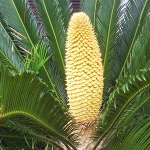 ソテツ(蘇鉄)の花 植えてから初めて花が咲きました🎉ソテツは雌雄異株なので、これは雄株ですね。 🏅のような花😁