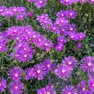 マツバギク(学名:Lampranthus spectabilis) ハマミズナ科 マツバギク属 放置しててもどんどん増えて、暑さにも負けず沢山の花を付けてくれる優れものです。