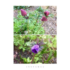 今年のアネモネ1番花 パープルでした。 葉っぱの数もすくないのに1番に咲きました。 なんか ちょっと寂しそう(*´ω`*) すぐにお友達たくさん出来るからね(*^^*)まっててね❣️