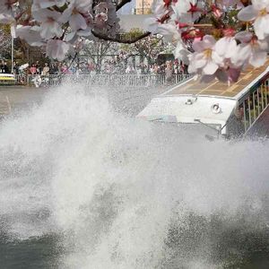大阪ダックツアー(続き) 水陸両用バスが大川に入ります。スリル満点!