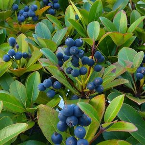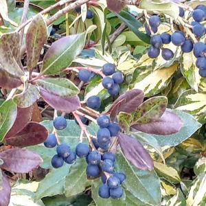 ショッピングセンターの 花壇に綺麗に紅葉した 葉っぱと実です シャリンバイ