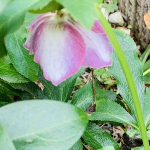 あずきちゃんが一番早く咲くと 思っていたら 全く別の場所玄関の木陰でひっそりと うつむき加減で咲いてる子を発見👀✨ 同じクリスマスローズの 株から種が落ちて 育った子達 こちらは白い子で 根元にあずきちゃんの蕾が 見えてます😇 🤳ピンボケで上手く撮れませんでした💦
