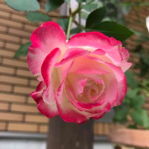 今のバラ🌹の様子 クリーム色にほんのりピンクと赤のコントラストがとても綺麗です(*´ω`*)