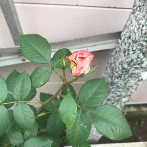 まだまだ咲くよーって空に向かってつぼみがまあるく膨らんでます🌱 昨年は小さなうん百円のお買い得な挿し木苗だったこのバラも先日の植え替えでとうとう10号のスリット鉢に❣️ たくましい🌹✨