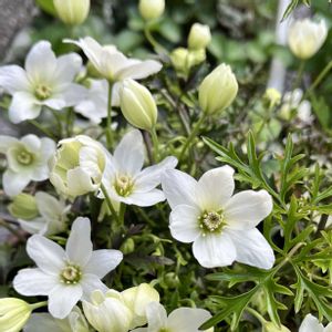 7.8℃🌅/19℃☁🌂予報 常緑クレマチス🌿 1️⃣カートマニージョー 3年目のコが真冬に植え替えしたら枯れてしまい、再お迎えの1年生です 2️⃣ペトリエイ 4年目、かな。今年も待ってるよ! (おまけ) セルリア、最後のつぼみです。このくらいの咲き具合が1番かわいい🤍