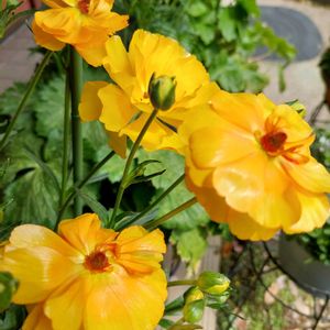 ラナンキュラス💕品種名はわからないけど、こんなに咲いてくれるとはちょっとビックリです‼️ 2️⃣昨年お迎えしたクレマチス💚又咲いてきて嬉しいです😊 3️⃣昨晩、今年最後の夜桜を📸🌸