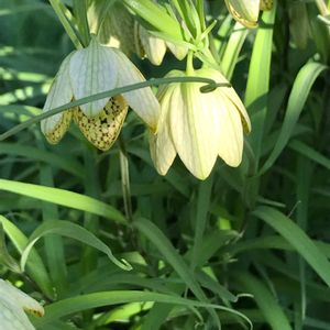 2月6日 今日のお花 ✨ バイモ ✨ アミガサユリ/バイモ 葉は細長く先は巻きヒゲになり、花弁の内側を覗くと濃いえんじ色の編み目模様があることから名付けられました。ユリの仲間ではありません。 和名 アミガサユリ(編笠百合)、テンガイユリ(天蓋百合) バイモ(貝母) 2024.3月撮影しました。