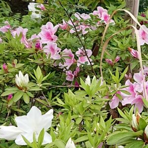 雨上がりの、白い躑躅、これも、愛でてやって、下さい。 印象、良かったので、投稿します。 🍀 🌺 🍀