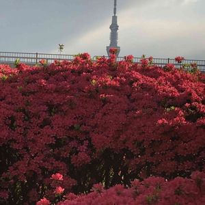 満開な躑躅の先には小さく見えるスカイツリー🌺🌸🌷🌹 🗼