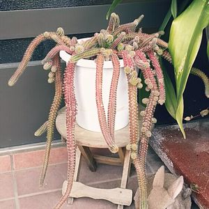 秋に祖母から貰った紐サボテン…赤くなってます(;^ω^) 寒いのかな?? 温かくなったら緑に戻ると信じてますがどうでしょうか。。