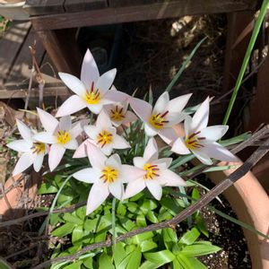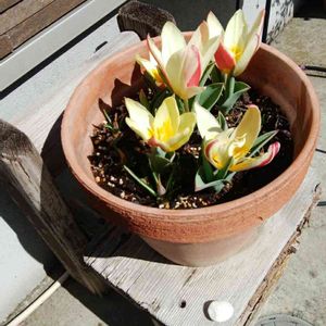 朝まで咲いてなかったのにさっき見たらパッカーン🌷 原種系のチューリップ 球根が小さくなってたのでお花も少し小さめ🤭 球根のごった煮みたいに色々入った植木鉢がアッチコッチに😁💨💨 花期がずれているの入ってるから堀上る時に何とかしなくっちゃ🤣🤣🤣