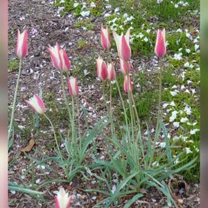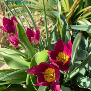 原種系のチューリップ🌷ひょろひょろタイプです。茎が短い子もきになります。ご縁があったら植えてみたい❁¨̮